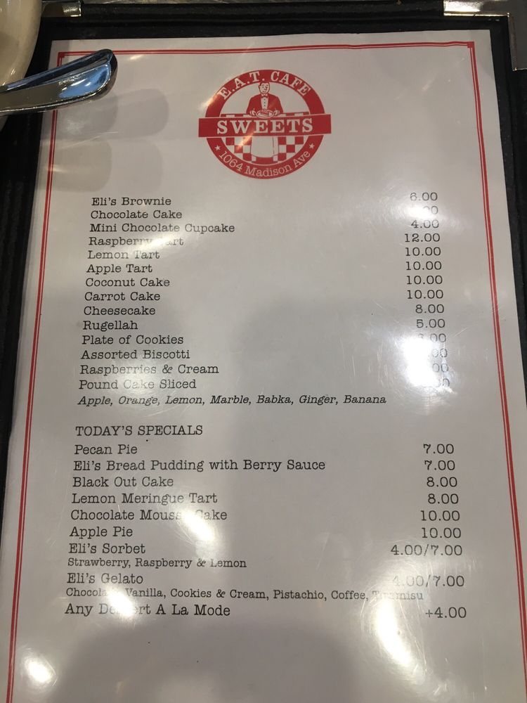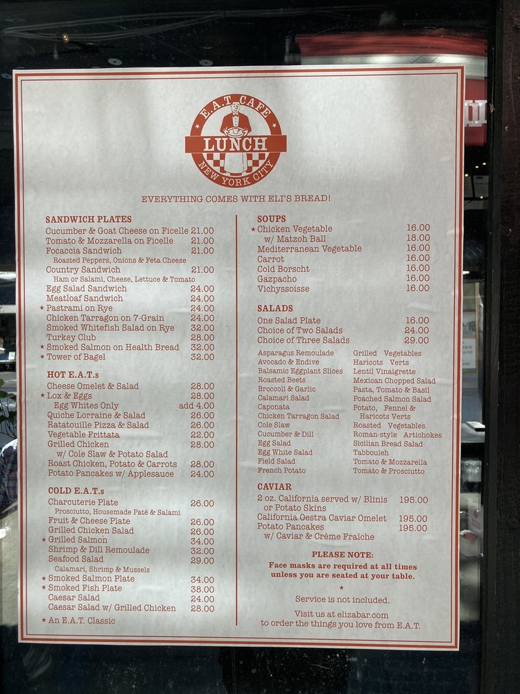 E.A.T. is a popular cafe located on Madison Ave in New York, offering a variety of breakfast and brunch options. They provide delivery, takeout, and catering services, making it convenient for customers. The menu includes delicious soups like Carrot Thyme and Chicken Vegetable, along with a selection of sandwich plates and hot dishes. The Cheese Omelet & Salad, Lox & Eggs, and Quiche Lorraine are highly recommended. Customer reviews praise the quality of food, reasonable prices, and attentive service. The cozy atmosphere, outdoor seating, and dog-friendly policy make E.A.T. a great spot for relaxing meals. Don't miss out on trying their famous cheese danish or quiche with a flaky, buttery crust. Overall, E.A.T. provides a satisfying dining experience with a wide range of options for everyone to enjoy.